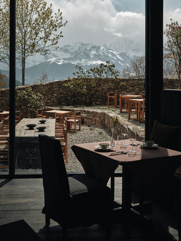 The Kawagebo Rooftop: An iconic open-air lounge that serves as the heart of the hotel, providing 270-degree views of the 13 peaks and a space for high-altitude reflection and stargazing.